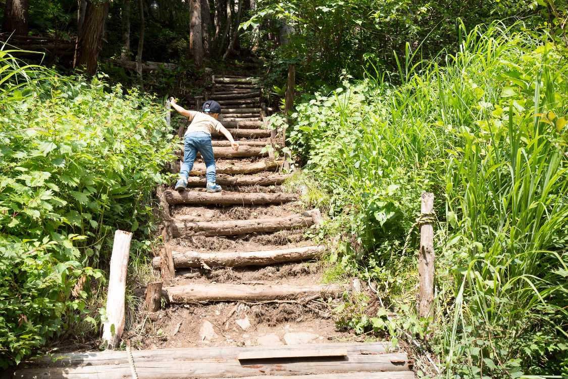 子どもには段差のある階段で、子どもにとってはかなり運動になる。