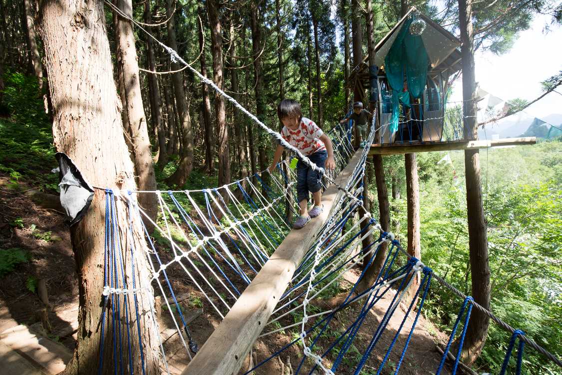 こんな空中に、さらにこんな傾斜の山中に遊具を設置できるのは、そういう技術集団がいるからだろう。