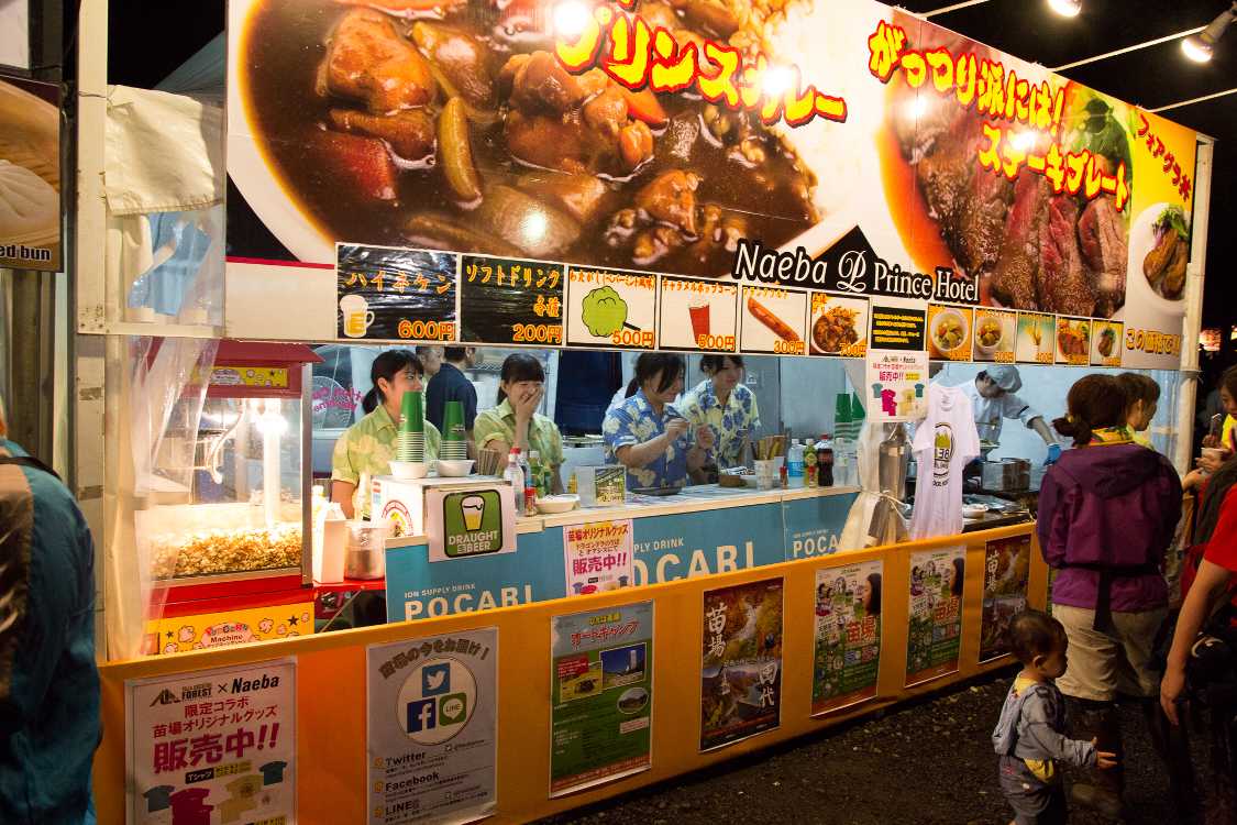オアシスエリア飲食店の夜の営業風景。苗場プリンスホテル。