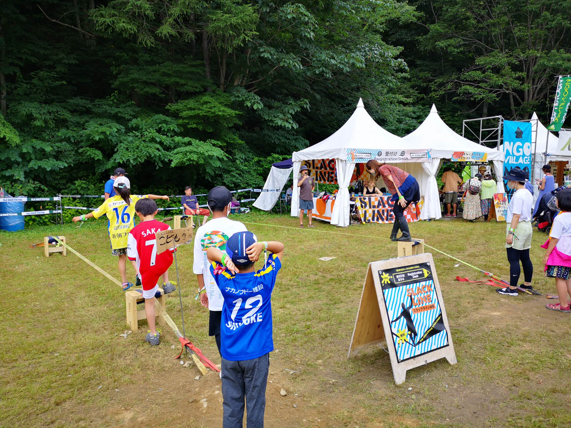 スラックラインの受け付け。