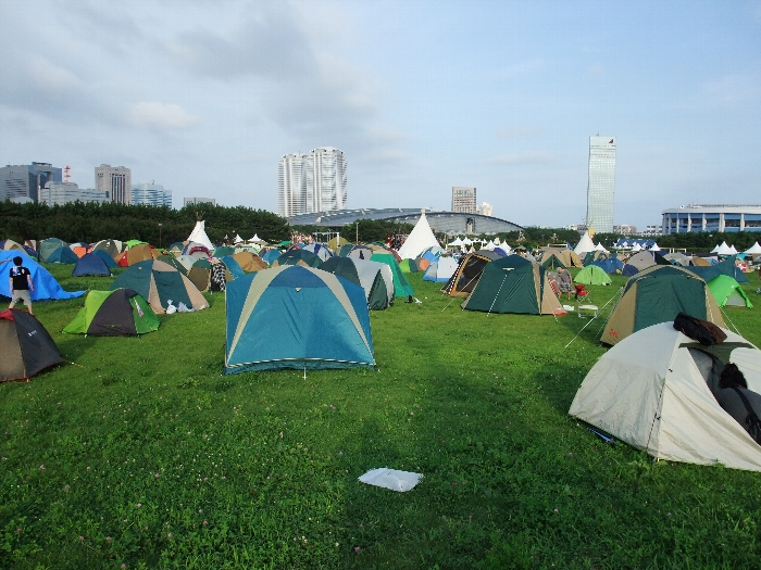 千葉マリンスタジアム、幕張メッセ両方が見えるキャンプサイト。