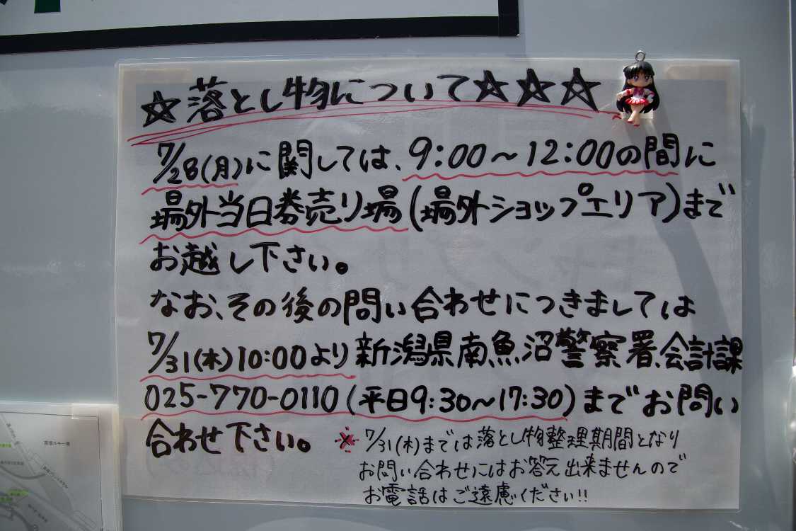 貴重品はこの中にはなく、インフォメーションで申し出る。