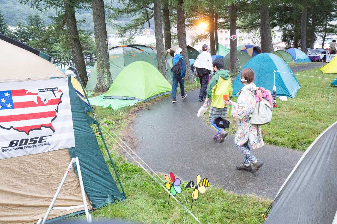 通路沿いのテントはBサイト、その向こうからはレディースサイト。
