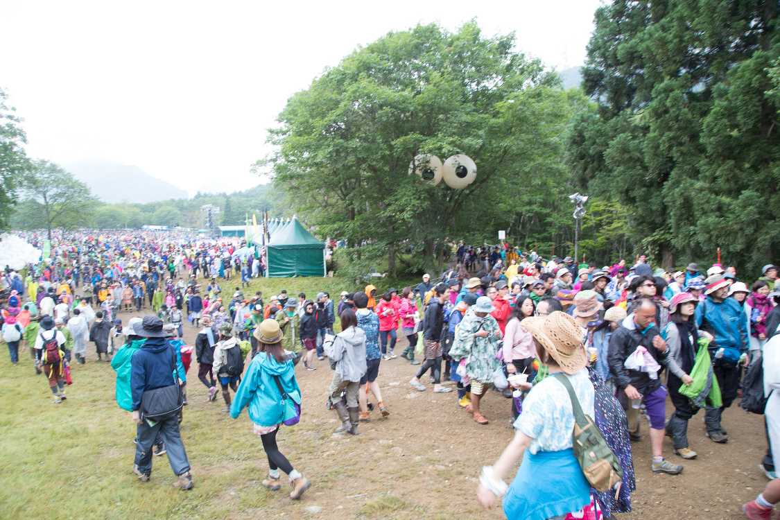 グリーンステージからホワイトステージに向かう人。電気グルーヴ終了後。
