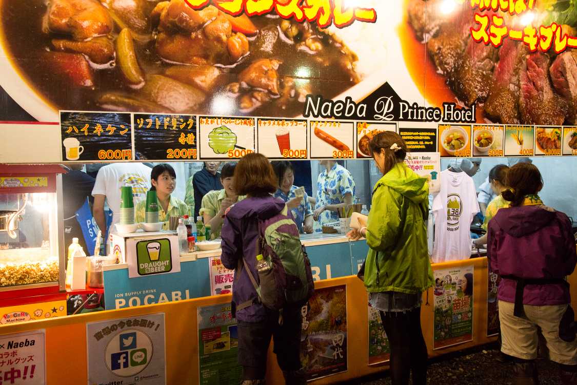 オアシスエリア飲食店の夜の営業風景。苗場プリンスホテル。
