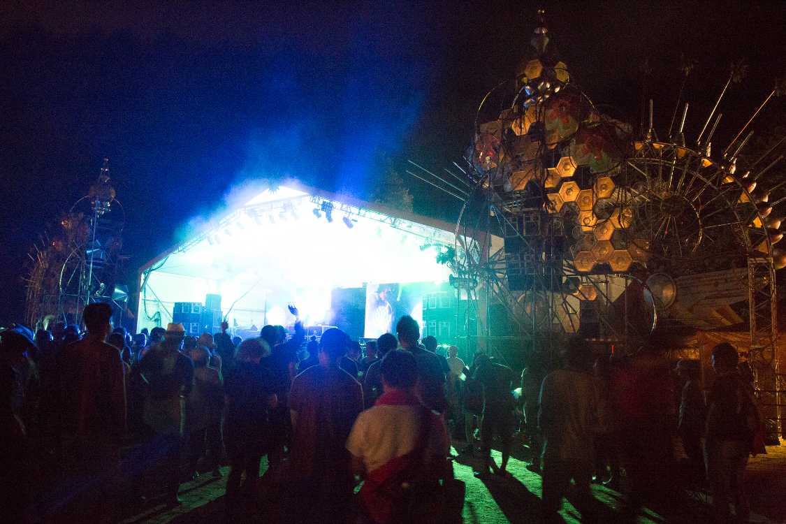 映像モニターが左右にあり、実質的なステージセットはDJブースの下だけ。