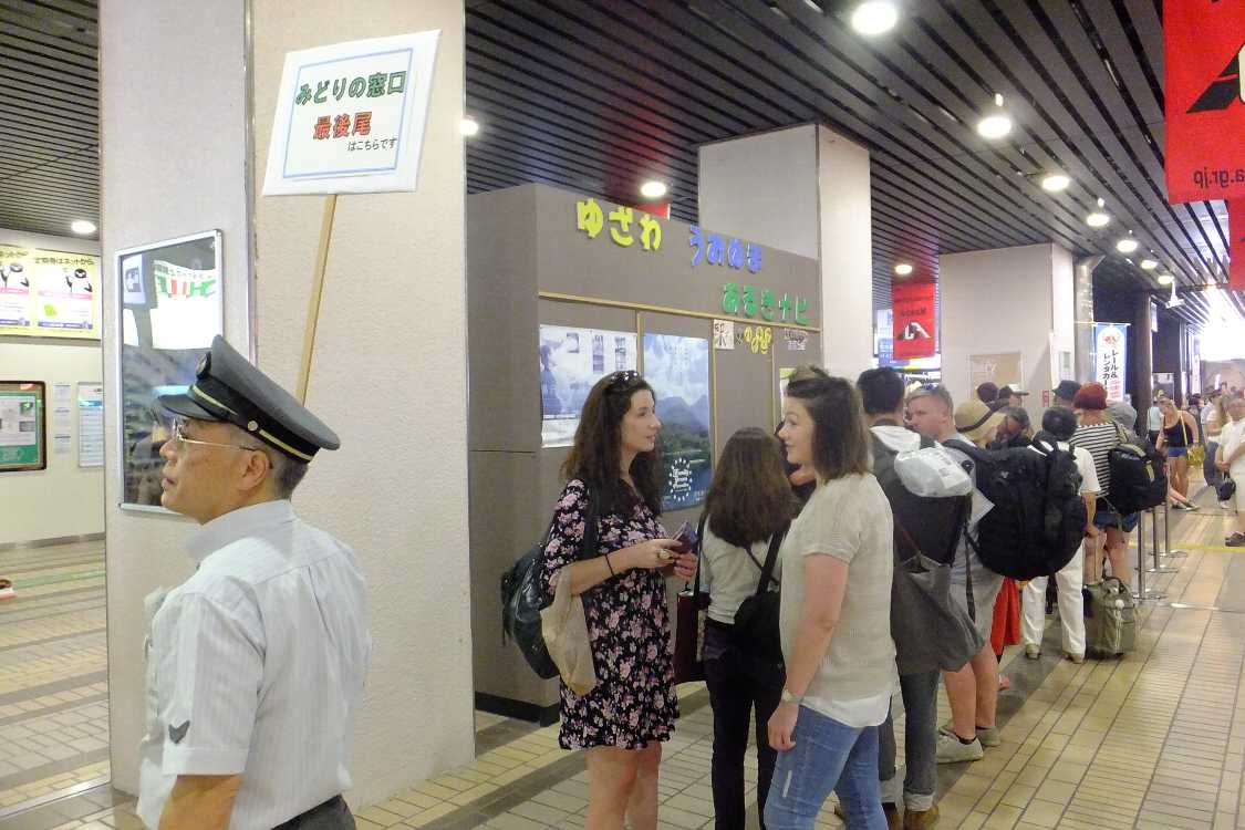 券売機もみどりの窓口も行列。事前に買っておく方が効率的だ。