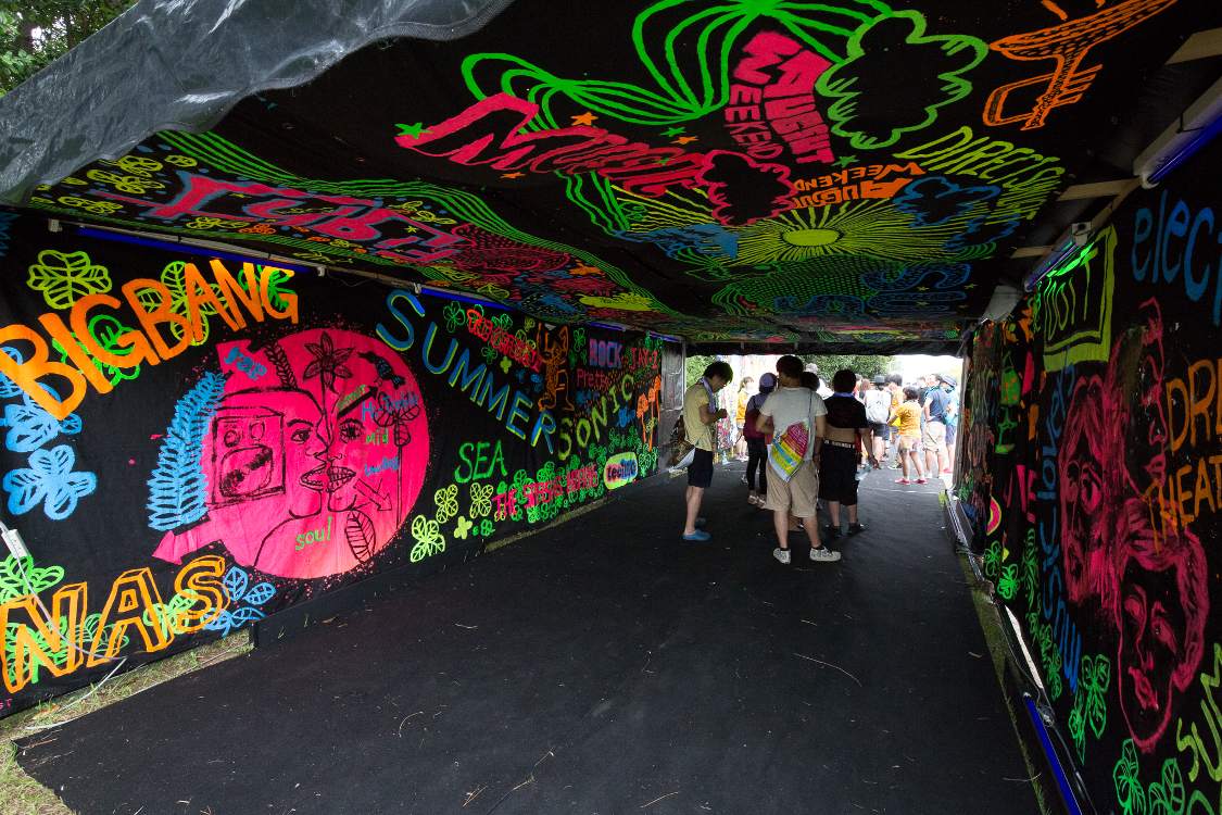 マリンステージ側にあるソニッカート。過去に描いた絵の再設置。