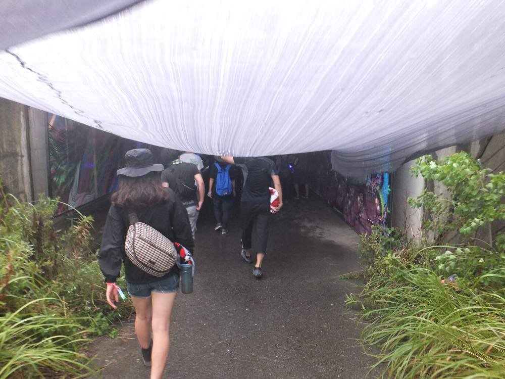 マリンステージ北側の隧道。壁に描いているわけではない。