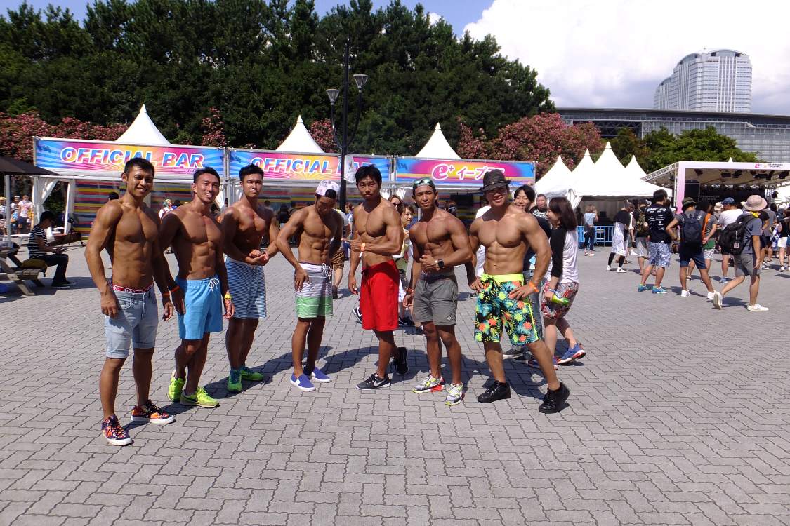 上半身裸の人は客ではなく、飲食店員などと同じ外部スタッフ。